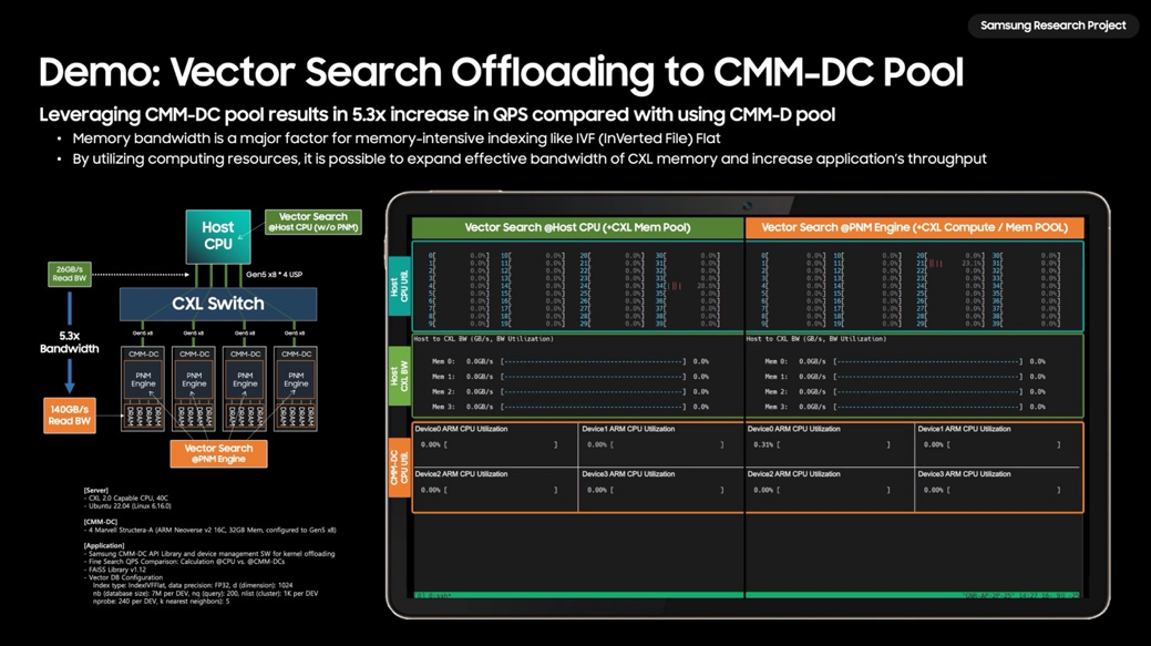 In benchmark tests conducted as part of Samsung’s research project, the system containing Structera A was able to process 19.798 vector search queries per second versus 3.579 for a system containing a CXL memory pooling device. Put another way, that’s 5.3X queries. Vector searches focus on embedded data in documents and the context surrounding information. While that’s beneficial for natural language queries, it can consume significant bandwidth and computational resources.3