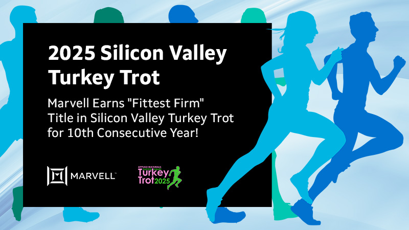 Marvell is proud to celebrate its 10th consecutive year as the “Fittest Firm” in the Silicon Valley Turkey Trot. Since 2016, Marvell has sponsored the competition and consistently earned this distinction for having the highest employee participation among large firms.