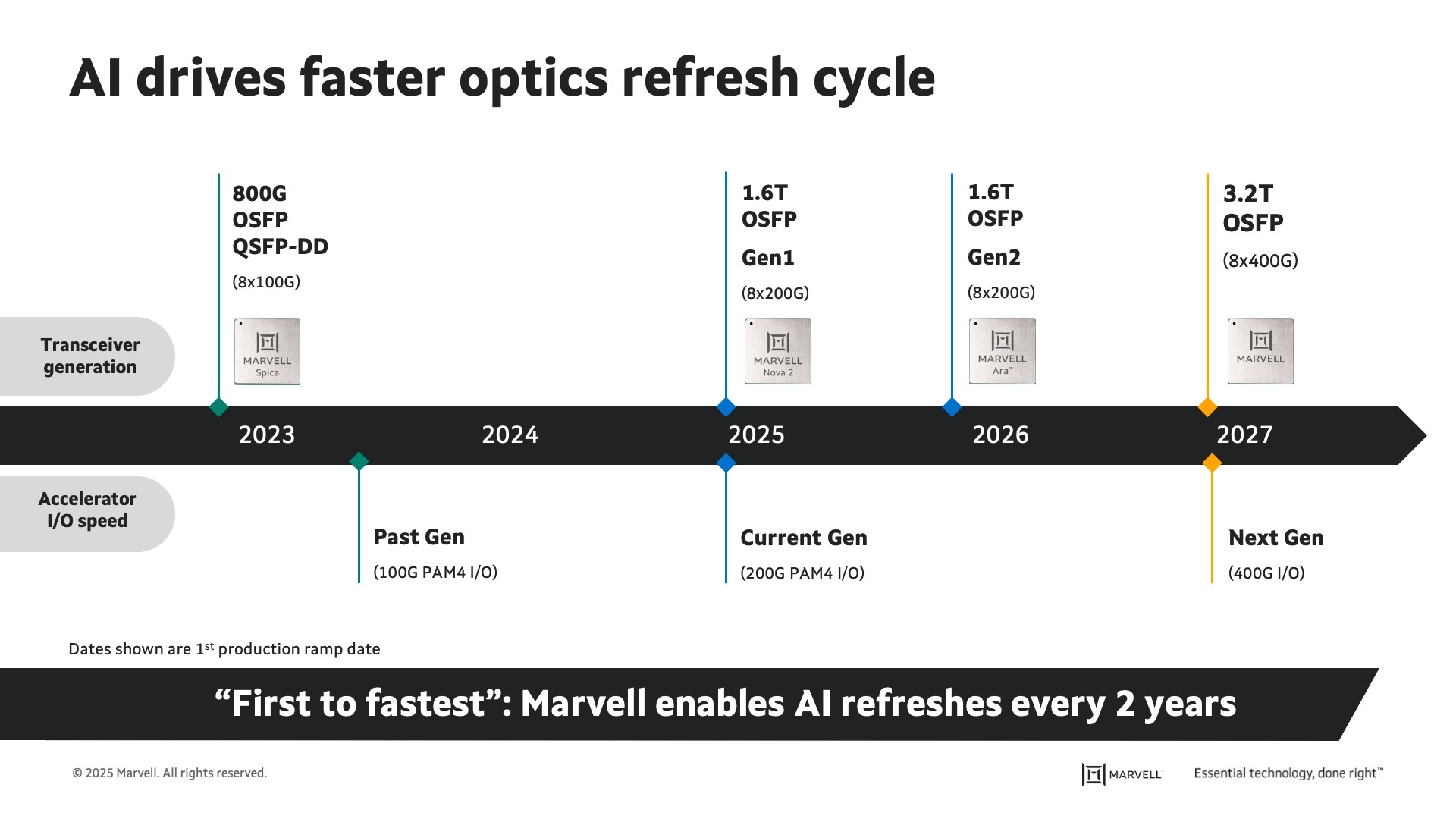 Marvell is currently working on 1.6T+ products, process node advances, silicon photonics, and new technologies.